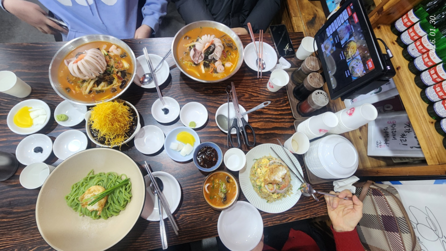 우리가 시킨 음식은 간짜장, 짬뽕, 탕수육 볶음밥이다.