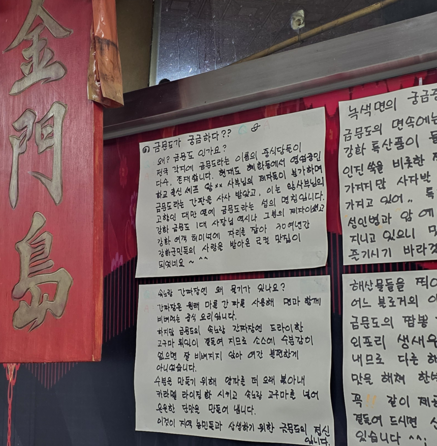 "금문도" 이름 참 특색있다. 한번 들으면 잊기 어려운 이름이다. 주인장께서 금문도 상호명에 대한 설명을 별도로 적어 놓으셨다.